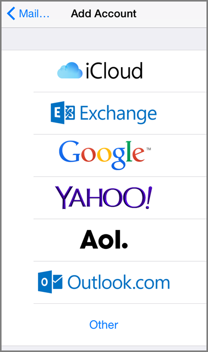 1. Tap Settings > Mail, Contacts, Calendars >Add account.